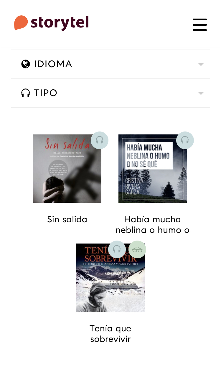 Puedes encontrar en Storytel tres audiolibros con mi voz: Sin Salida de Salud Hernández Mora, Tenía que Sobrevivir de Roberto Canessa y Pablo Vierci y Había mucha neblina o humo o no sé quéde Cristina Rivera Garza.